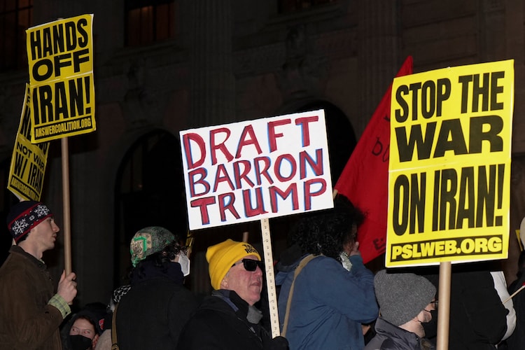 जंग के खिलाफ न्यूयॉर्क में प्रोटेस्ट हो रहे हैं. प्रदर्शनकारी, हाथों में प्लेकार्ड लिए, न्यूयॉर्क शहर में न्यूयॉर्क पब्लिक लाइब्रेरी (NYPL) के बाहर ईरान के साथ US-इज़राइल संघर्ष के खिलाफ प्रदर्शन कर रहे हैं.
